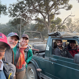 While there, we took a couple of afternoon side trips. One was to a national park for a game safari with our new friends Laura and Aniela. We were searching for elephants, leopards and tigers and it was funny because it was right next to a main highway. It was like, Take a left at Farmer Ted’s house and there’s an elephant waiting for you. We got really lucky and saw a leopard hunting but never saw any elephants or tigers. It was a beautiful but cold afternoon in the back of an open truck. The safari was also the biggest “This is where we die” moment and “what the hell did we sign on for” and “What about that Travel Insurance conversation, again??” of the entire trip. This was probably the LEAST safe thing we did for the past year…not because of the animals but the crazy-assed driver. We were in an Indian safari truck with no seatbelts, which, even WITH seatbelts wasn’t all that safe, and the top was completely open. This wasn’t so bad in the park, but driving down the highway at 70 miles an hour or around curvy mountain roads we thought we were going to eject with every pothole or competing driver playing chicken with us. In addition, it was friggin cold in the open back, especially after the sun went down, so we were all bundled up and hanging on for dear life. We laughed about it afterwards, but I think in the future we’ll be vetting our excursions a little more closely! But we got to see a leopard!