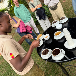 Tea Farm, Coffee Farm, Cheese Farm, Giraffe Farm...Nairobi offered a completely different set of opportunities to experience. And we didn't even go to the Nairobi National Park on the outskirts of the city - a wonderful national wildlife preserve where you can see the Big Five with the city skyscrapers in the background - quite different from the Serengeti. One of the interesting items we learned in the coffee farm relates to bees. The farm had various plants and trees surrounding the coffee fields, such as banana, macadamia nut, peach, mango, avocado, etc. Due to the bee pollenation the coffee nearest the surrounding plants would gain some of the same taste characteristics. One of the coffee beans had a definite aroma of banana while another took on those of the avocado or macadamia nuts, which was fascinating. My taste palette isn't that refined, but as long as I can taste caffeine in my coffee I'm typically pretty good. But I love learning about the process a bit more.