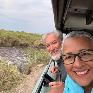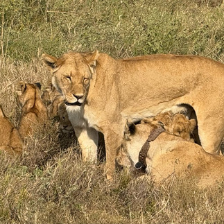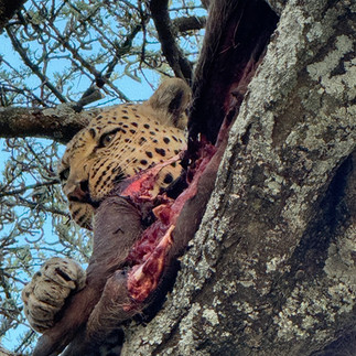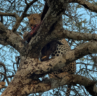 That 2nd afternoon, even with all of the car issues and delays, was magical. As soon as we entered the park, we saw a Serval cat, hunting in the high grass right next to the road. Then we lucked upon a whole pride of Lions with about 14 young cubs. Then we saw a family of beautiful Cheetahs enjoying a fresh impala lunch. And finally, we came upon a Leopard, high in a tree, with his unfortunate warthog dinner. None of the animals really seemed bothered by the flow of trucks and people ogling them - they just went ahead with their lunch or naps or cleaning like we weren’t there.