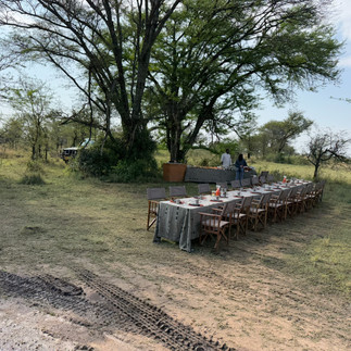 But, we did get our first Safari Lunch, which I thoroughly enjoyed and looked forward to each day. The companies have a really large picnic basket, with nesting metal containers for food and drink, that they get cleaned and refilled each night at whatever lodge or campsite you’re staying at. It doesn’t really stay hot but the food is really good - typically a local rice dish with a salad and chicken/beef and then a fruit plate. There is also a drink tin that contains hot water and coffee/teas. All of this gets spread out at little lunch spots located around the park, complete with marauding monkeys and beautiful birds that are always on-call to steal any unattended food item. At the first stop, a girl had an apple and wasn’t paying attention closely enough and got too close to an adorable little vervet monkey. We heard a shriek as the monkey snatched the apple out of her hand…lesson learned!