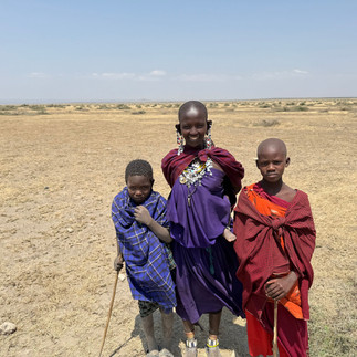A half hour outside of Arusha, heading to Tarangire National Park, and the countryside is pretty bleak. With no rain for a few months, it’s all brown, save for the few green trees and bushes and cacti. The land could be western Oklahoma, it’s hilly and crossed with jagged, dry ravines that fill up and overflow in the rainy season. Now, they are dying and dusty and the few remaining plants are quickly found by the hungry Maasai goat and cattle herds that are roaming about everywhere. Bernard tells us about the nomadic Maasai tribes that still lead their herds in search of water, which is becoming harder recently due to global warming. The Maasai herders are interesting…they mostly have on the traditional Maasai garb - robes in brightly colored checks and plaids draped around their necks like a toga, carrying a long staff, usually a tree limb. But since it’s winter here they supplement with modern coats. The funniest one was a guy wearing what looked like an American high school lettermen’s jacket on top of his toga. I was tickled a little - a herder had a medium size herd (about 30-40 cattle) and his son, about 6-7, was trailing with his own staff, mimicking the swinging motion of his father but not hitting anywhere close to the cattle. A group of four school aged Maasai boys in purple robes stand on the side of the road and wave at us with huge, white smiles, motioning for money.